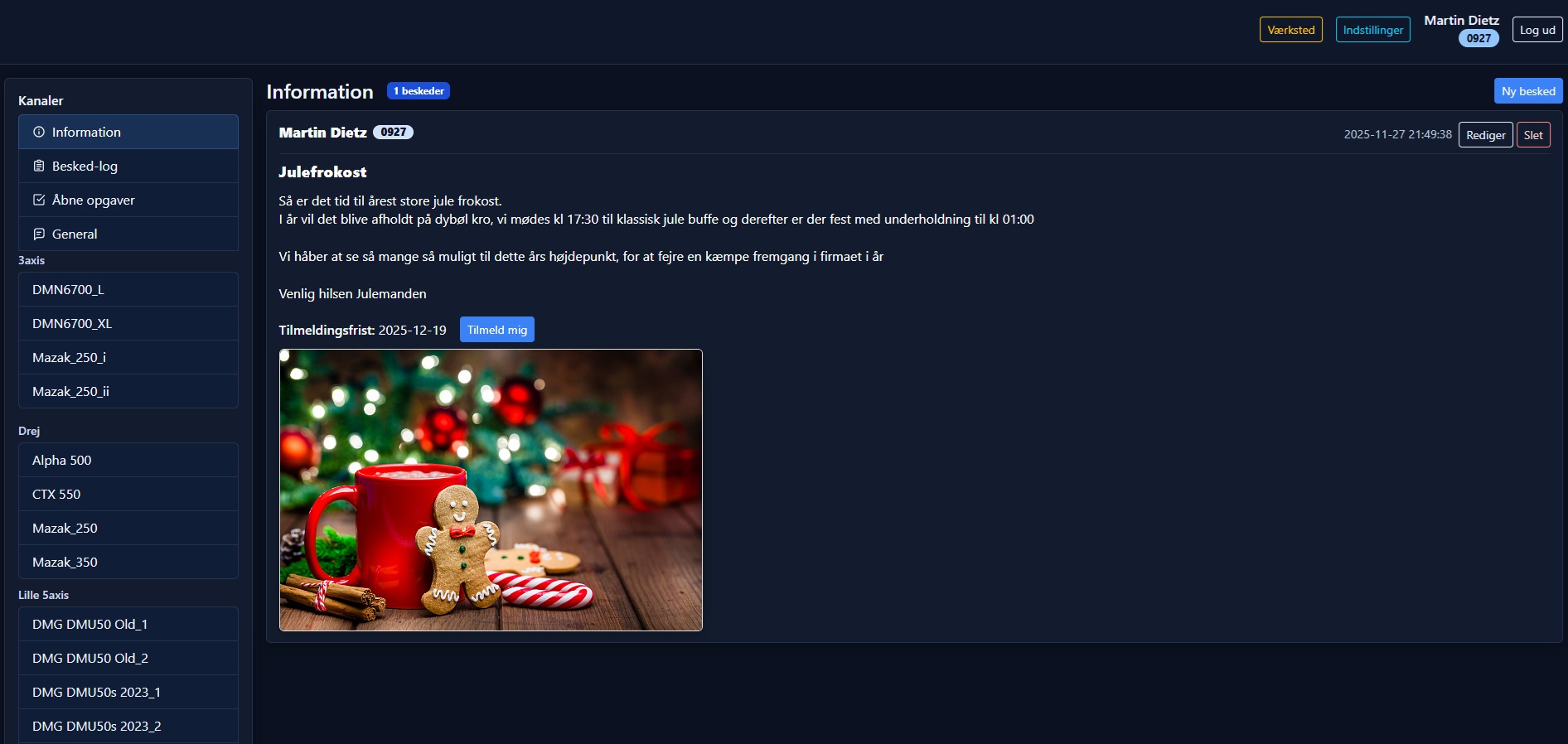 Behovet var et simpelt, men effektivt system til beskeder, opgaver og logning – uden tunge standardløsninger. Jeg udviklede en webbaseret beskedportal med login, roller, kanaler, ulæste beskeder, historik/versioner og billedehåndtering. Operatører kan tage og overtage opgaver, mens ledelse og support har ét samlet overblik.